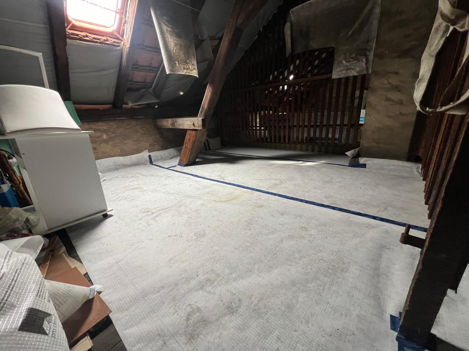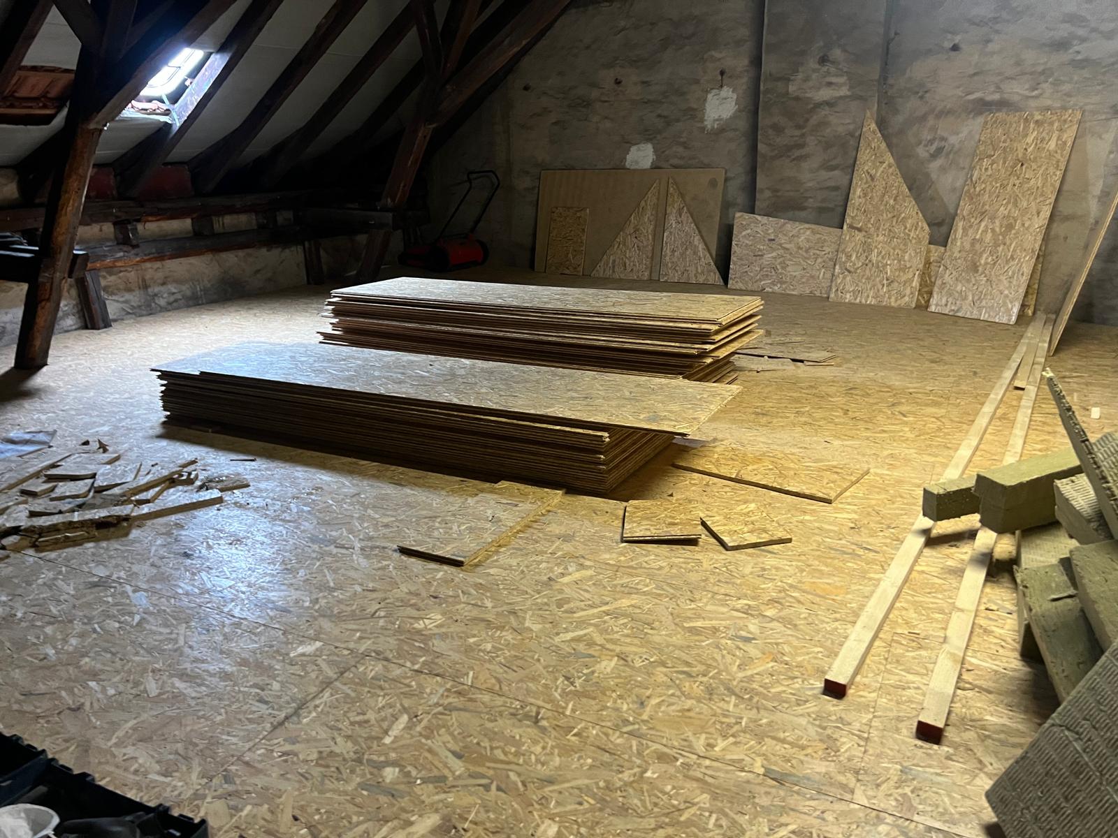Zuerst wurde die Fläche sorgfältig mit Dämmplatten ausgestattet, um den Wärmeschutz zu verbessern. Anschließend erfolgte die Verlegung von robusten OSB-Platten, die für eine gleichmäßige Lastverteilung und hohe Belastbarkeit sorgen. Diese Kombination aus Dämmung und Bodenverkleidung steigert nicht nur die Energieeffizienz, sondern schafft auch eine funktionale Fläche für zukünftige Nutzung.