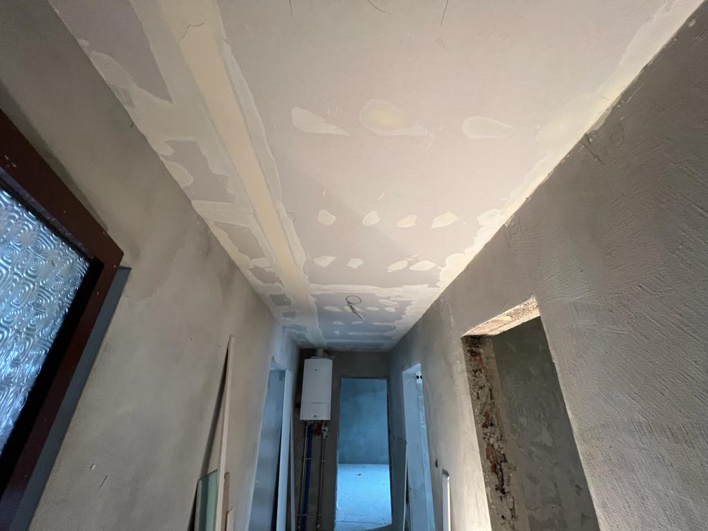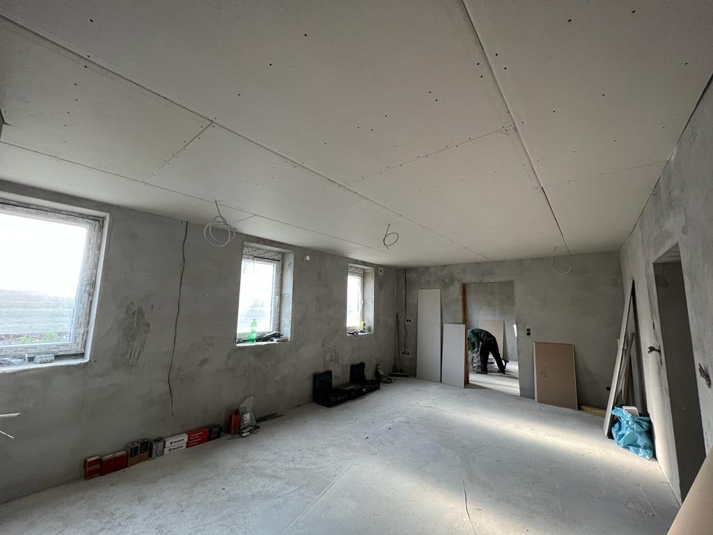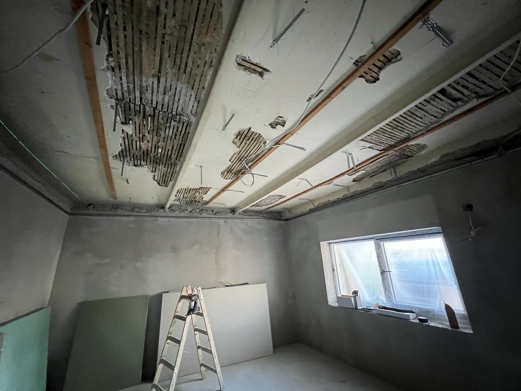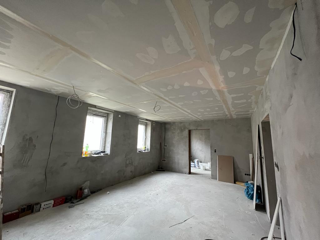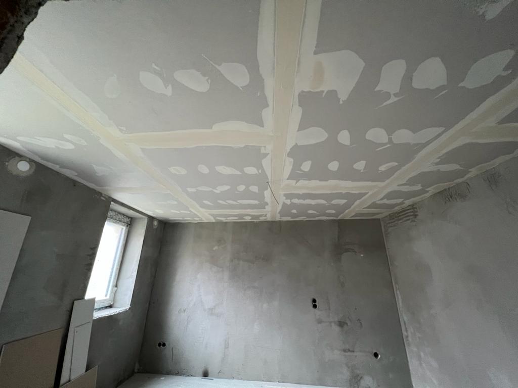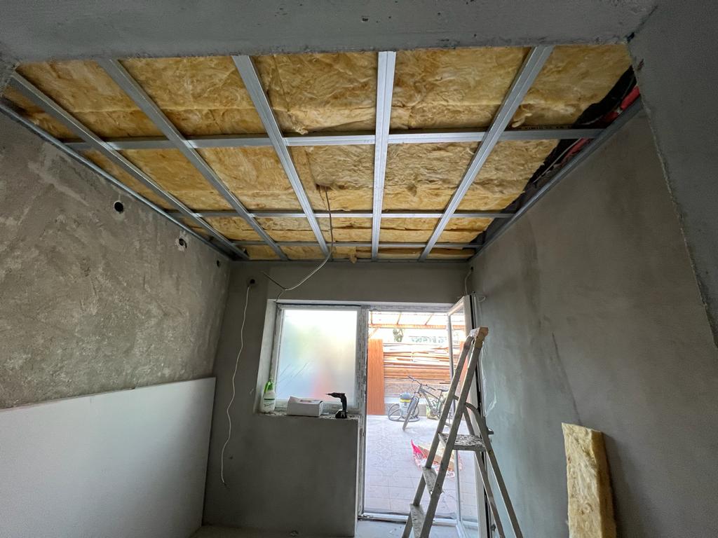 Darauf folgte das millimetergenaue Anbringen der Gipskartonplatten. Diese wurden sorgfältig angepasst und verschraubt, sodass eine gleichmäßige und glatte Oberfläche entstand. Abschließend wurden die Fugen verspachtelt und die Decke für weitere Oberflächenarbeiten vorbereitet.