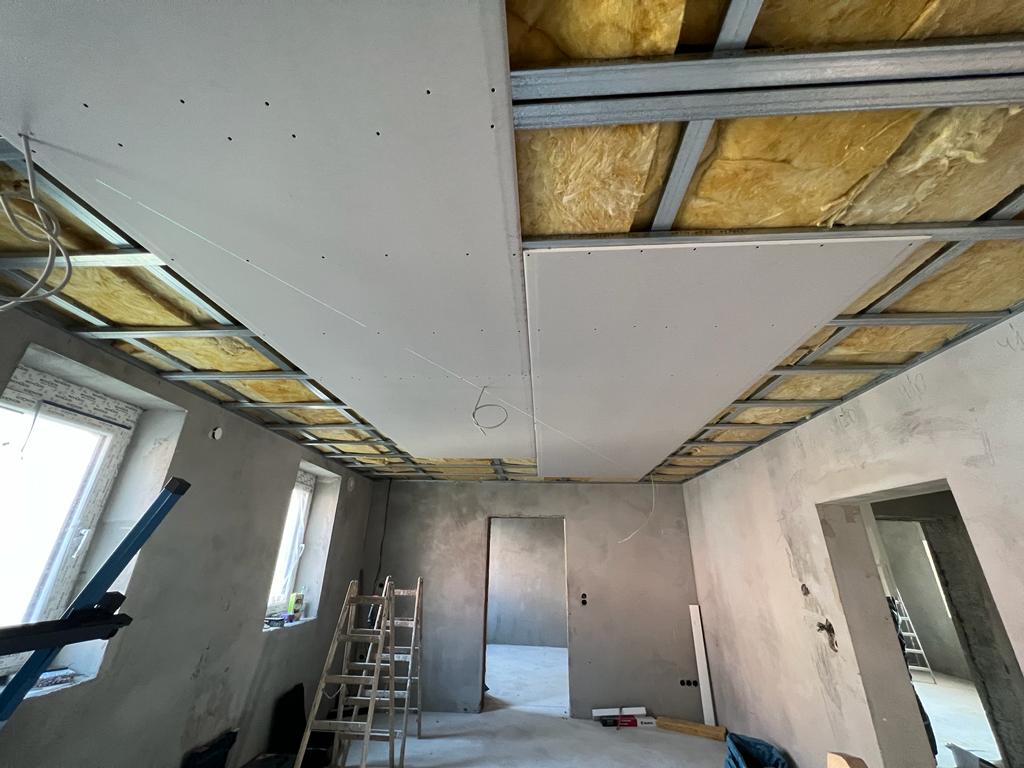In Edenkoben haben wir den Einbau einer Gipskartondecke umgesetzt. Die Arbeiten begannen mit der Erstellung einer stabilen Metallunterkonstruktion, die gleichzeitig Platz für Leitungen und Dämmmaterial bot. Anschließend wurde eine hochwertige Dämmung integriert, um die energetische Effizienz und den Schallschutz der Räume zu verbessern.