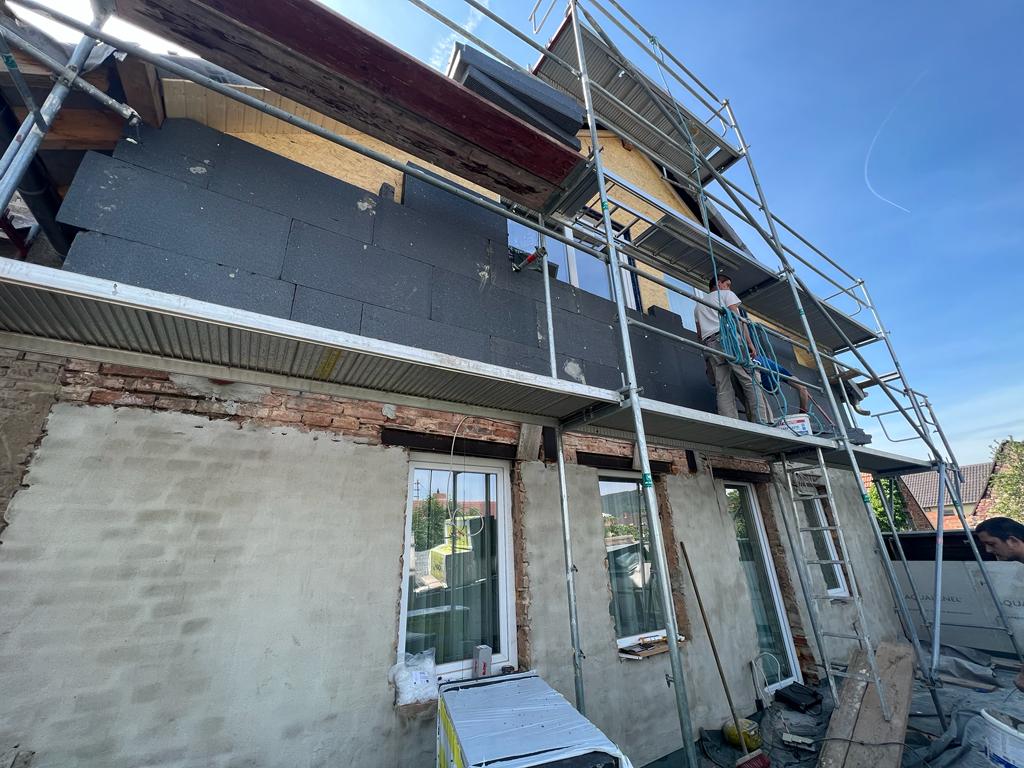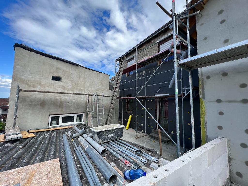 In Edenkoben haben wir eine vollständige Fassadendämmung inklusive Oberflächenbearbeitung umgesetzt. Im ersten Schritt wurde die Fassade fachgerecht gedämmt, um Wärmeverluste dauerhaft zu reduzieren und das Raumklima spürbar zu verbessern. Die hochwertige Außendämmung bildet die Grundlage für eine energieeffiziente Gebäudehülle, die langfristig Heizkosten senkt.