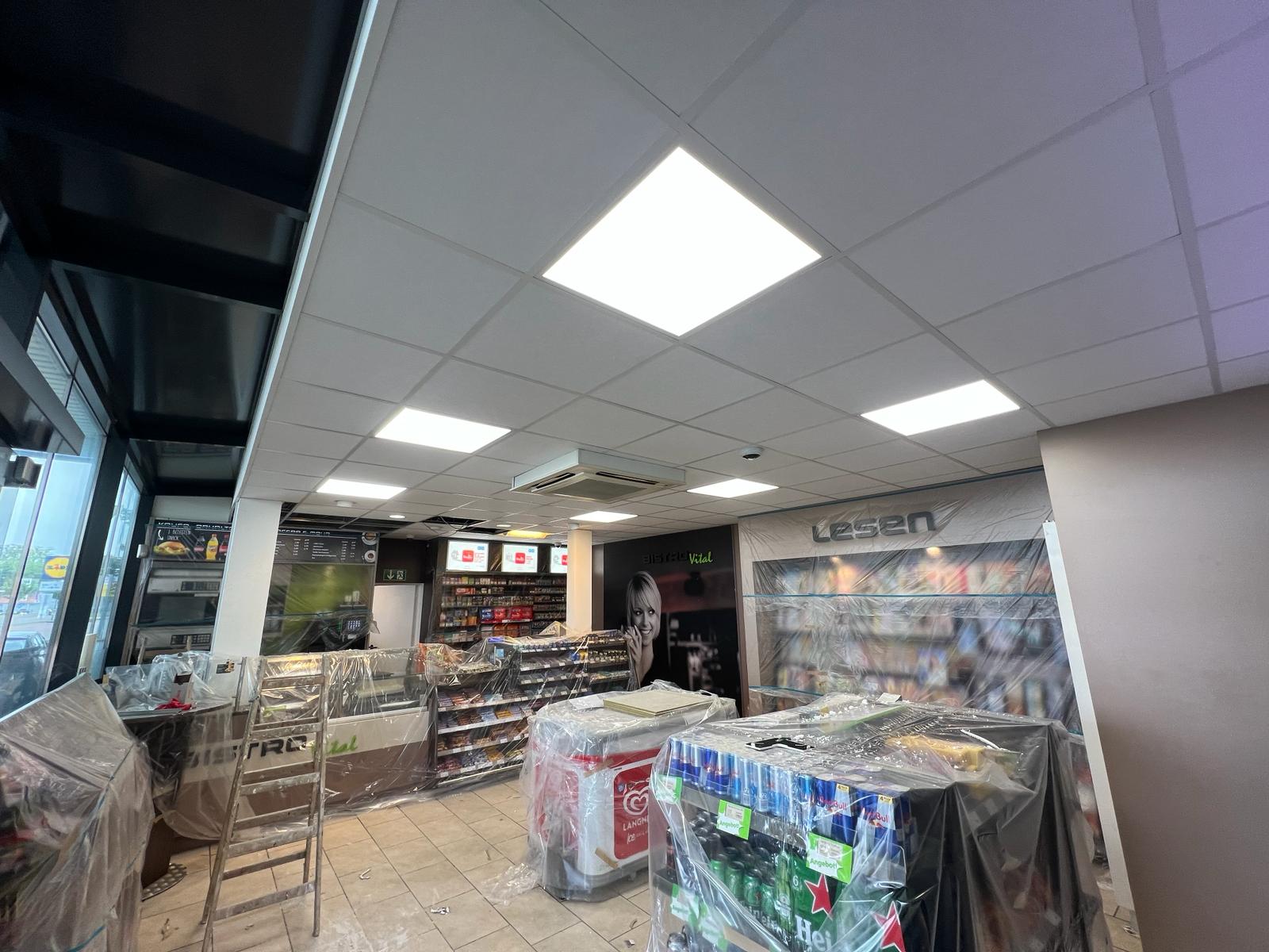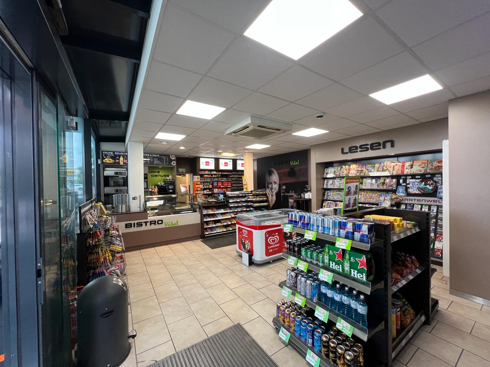 Das Ergebnis ist ein heller, freundlicher und technisch optimierter Raum, der den Kunden ein angenehmes Einkaufserlebnis bietet und den modernen Anforderungen einer Tankstelle entspricht.
