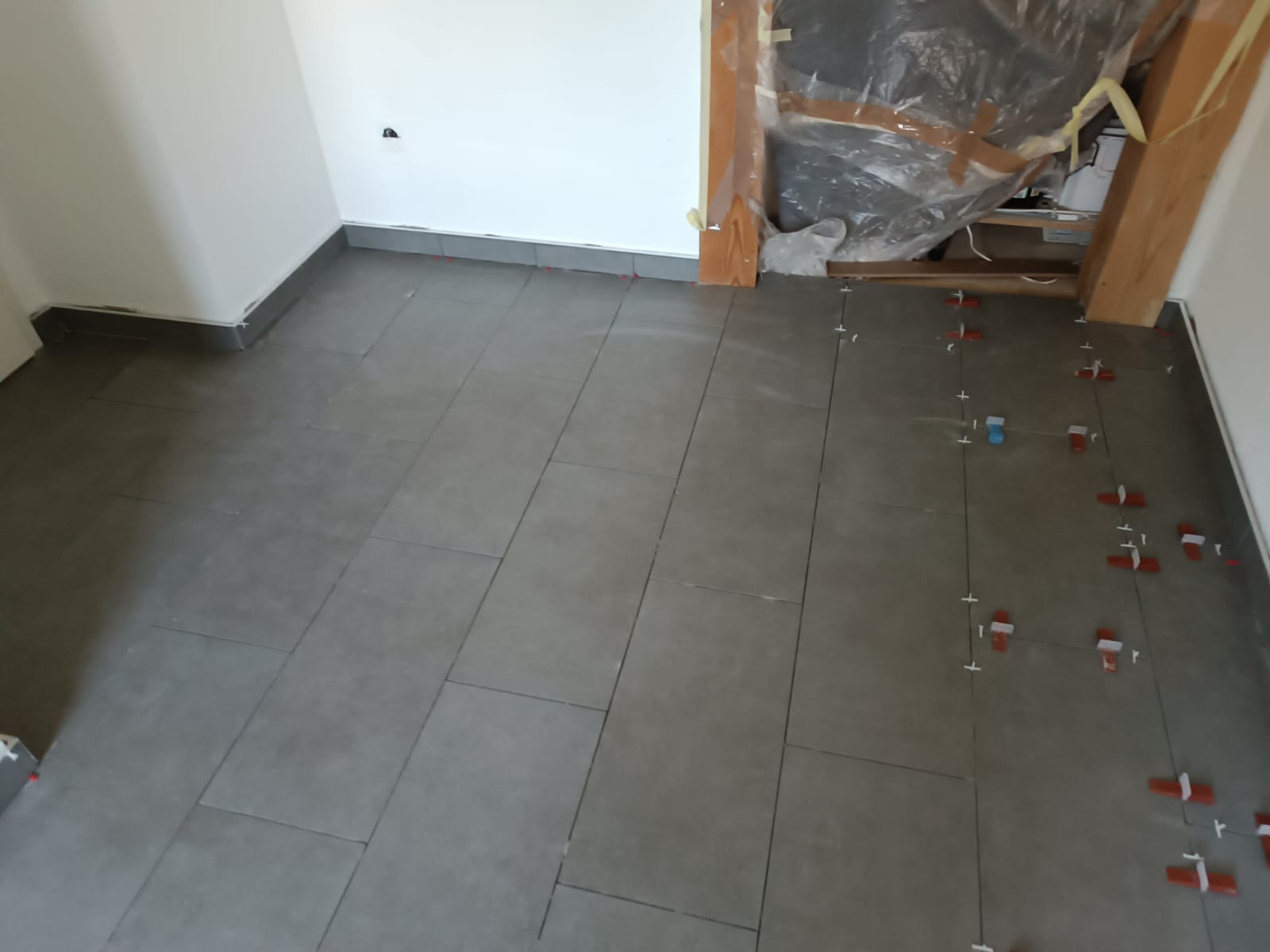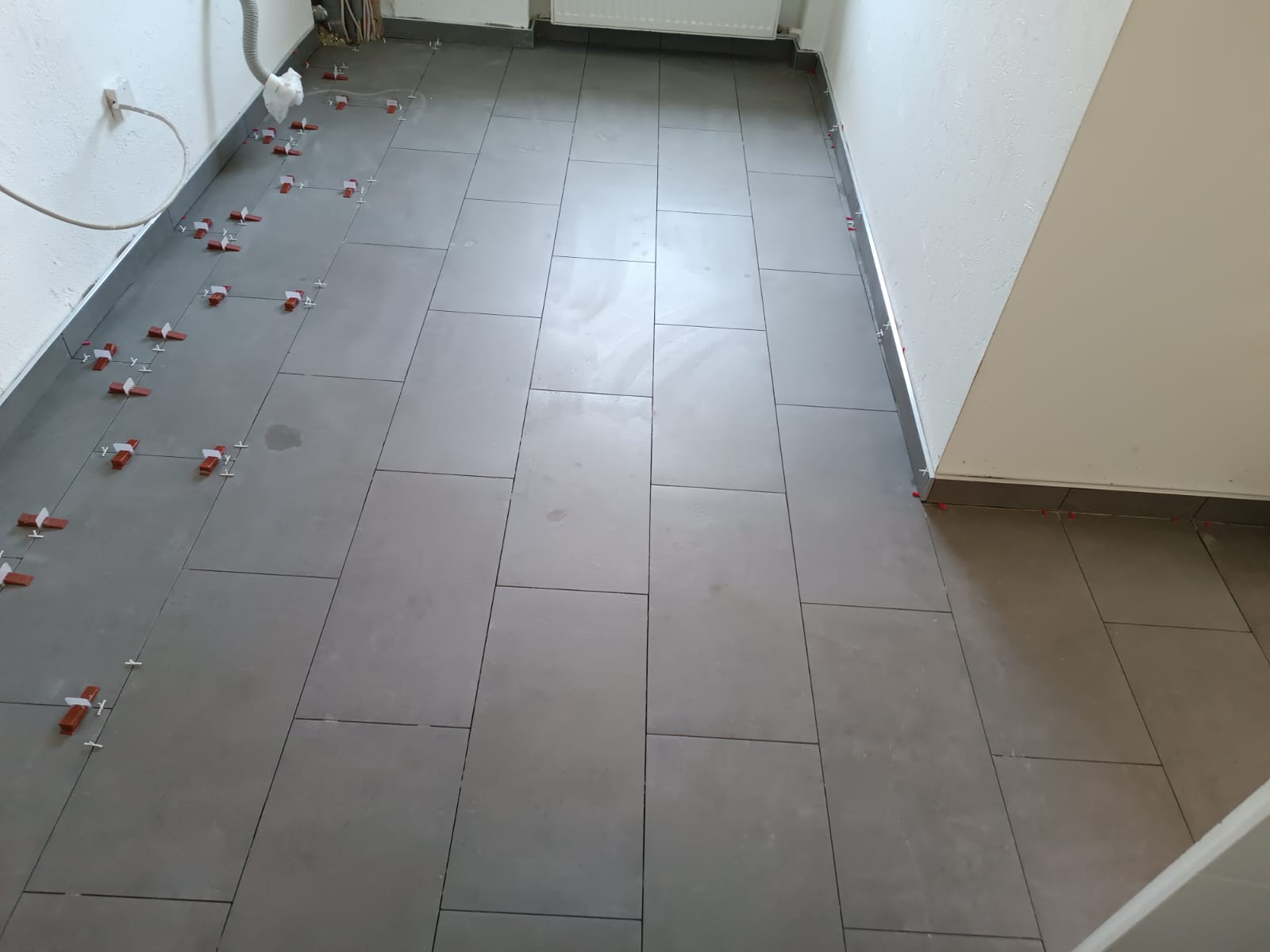 Im Anschluss wurden hochwertige Bodenfliesen millimetergenau verlegt und die Fugen gleichmäßig ausgeführt. Das Resultat ist eine strapazierfähige und pflegeleichte Oberfläche, die nicht nur funktional überzeugt, sondern auch optisch zur Aufwertung des Raumes beiträgt.